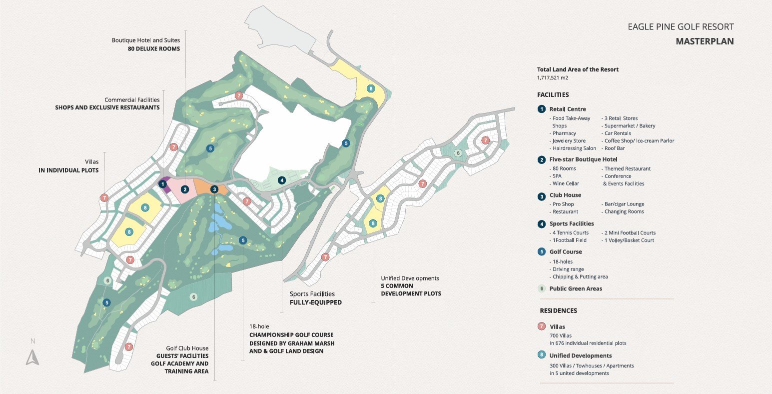 EAGLE PINE GOLF RESORT embodies a flawless fusion of leisure and world-class golfing.  Designed by a dynamic team, the resort is aimed at offering a true feeling of mystery, excitement, and remoteness from everyday life.  Located north-west of the thriving, cosmopolitan city of Limassol, the EAGLE PINE golf course will feature an undulating, windswept terrain and dune-style landscape spearheaded by Graham Marsh and the resort’s owner, Aristo Developers, allowing golfers to immerse themselves in the five-star EAGLE PINE experience