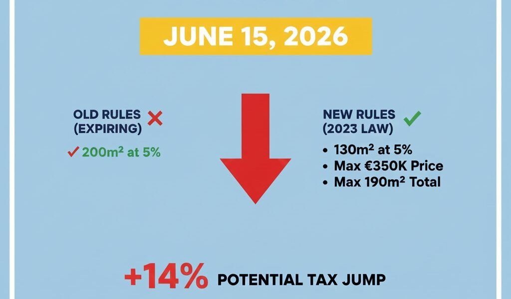 Executive Summary (TL;DR): The dual-VAT system in Cyprus is ending. On June 15, 2026, the transitional period for the “Old Rules” (which allowed 5% VAT on the first 200m² regardless of price) expires. To save up to 14% on your investment, buyers must ensure their VAT applications are submitted before this mid-summer cutoff.